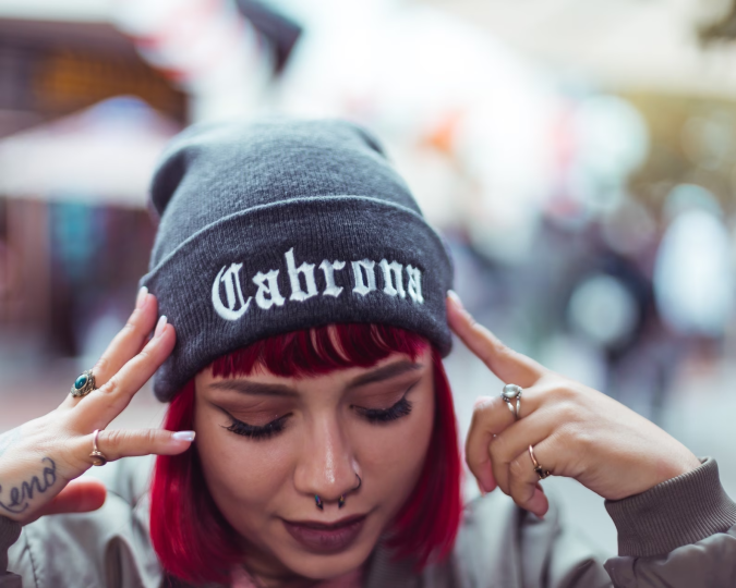 Cabrona Beanie (Old English), $18, available at etsy.com.