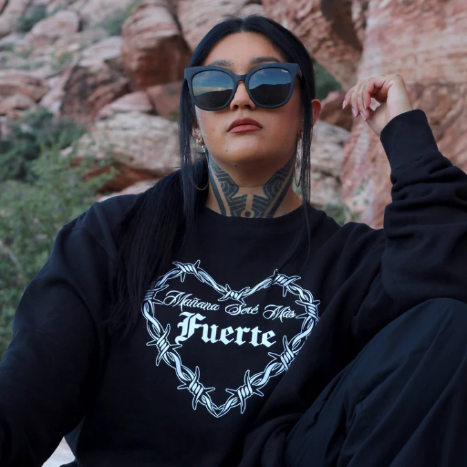 Sinaloa-born jefa Cinthia Martinez founded Latina Lifters to create a space to represent and empower Latinas in the fitness community, meshing la cultura with their passion for lifting. This comfy crewneck is the perfect example of that. With the empowering phrase “mañana seré más fuerte” emblazoned inside a barb wire heart, this is a great way to give something cozy, empowering, and encouraging. We love that just by wearing it, whoever receives this present, will get a little reminder of their strength.