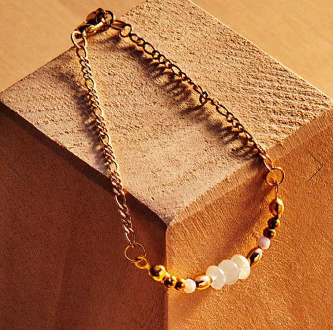 Bring new vibes with you everywhere you go with this moonstone bracelet by Vibemade. The bracelet is handmade with organically shaped seed moonstone crystals and 14K gold-plated beads. The moonstone signifies new beginnings and intuition. You can even personalize your bracelet with an initials charm to make it even more unique. Female-founded and owned by the Dominican Republic native Grace Alvarez, Vibemade products are handmade and designed with love and intention.