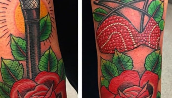 I love when someone takes a different angle on a an artistic theme. Take, for example, this fabulous tattoo of Selena. You know it’s her without having to see her face—her legendary lipstick-covered microphone, rhinestoned bustier, and roses.