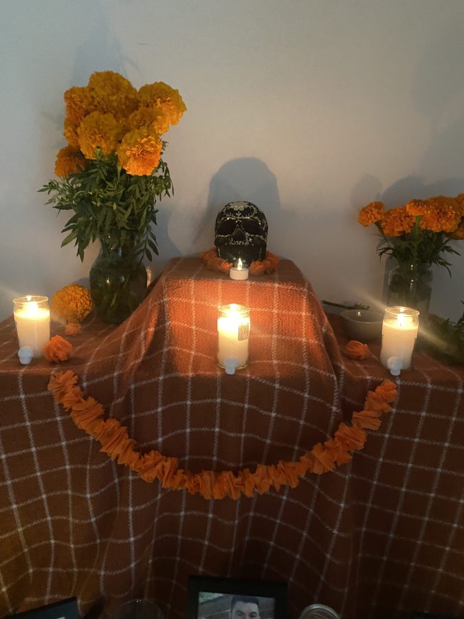When it came time to build my own ofrenda this year, I began to look back on what I had learned in that class along with information from my own research. I looked through how other people set up their ofrendas and kept the timeline of the festivities in mind to make sure I was staying in line with traditions. Deciding to make my first ofrenda came with a lot of pressure. This is the first time I am partaking in such a beloved tradition meant to honor the memory of our family and ancestors. I want nothing more than for this ofrenda to be as beautiful and worthy of not only my loved ones, but my roommates’ loved ones who I also wanted to share this experience with.