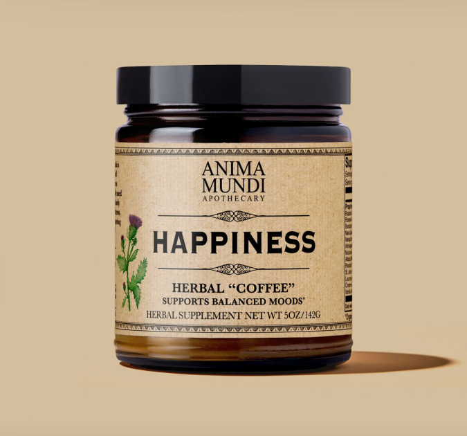 Anima Mundi Apothecary HAPPINESS Powder | Herbal “Coffee”, $35, available at animamundiherbals.com or on Amazon.com.